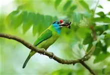 绿拟啄木鸟为鴷形目,须科,拟啄木属的一种。形较大拟啄木鸟略小,体长约260mm。头、颈及胸浅褐而具淡黄白色条纹;喉几为淡黄白色;身体余部草绿色。虹膜棕褐色,眼周裸露部黄色;嘴峰角黄色;跗跖和趾角黄…全部>>