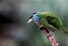 黑眉拟啄木鸟,为须䴕科、拟啄木鸟属的小型鸟类,体长20-25厘米,外形和金喉拟啄木鸟非常相似,但具粗著的黑色眉纹,头侧和耳覆羽以及下喉蓝色而不为银灰色,前颈两侧各有一块鲜红色斑。全部>>