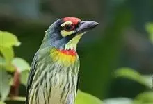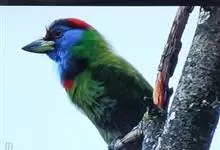 蓝喉拟啄木鸟,是须鴷科、拟啄木鸟属的鸟类。蓝喉拟啄木鸟为小型鸟类,体长20-23厘米。前额至头顶鲜红色,其上有一宽阔的黑色横带,将此红色分为前后二块;头侧、颏、喉蓝色,下喉两侧各具一红色点斑。…全部>>