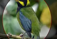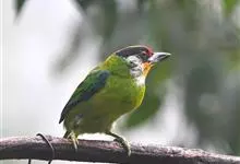 金喉拟啄木鸟,是须鴷科、拟啄木鸟属的鸟类。金喉拟啄木鸟为小型鸟类,体长19-24厘米。额深红色,头顶金黄色,后枕具一大块深红色斑,耳羽和头侧银灰色,上体草绿色,颏和上喉金黄色,下喉淡银灰色,…全部>>