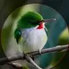 绿拟啄木鸟为鴷形目,须科,拟啄木属的一种。形较大拟啄木鸟略小,体长约260mm。头、颈及胸浅褐而具淡黄白色条纹;喉几为淡黄白色;身体余部草绿色。虹膜棕褐色,眼周裸露部黄色;嘴峰角黄色;跗跖和趾角黄…全部>>