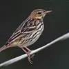粉红胸鹨:属小型鸣禽,体重18-27克,体长13-18厘米。非繁殖期粉皮黄色的粗眉线明显,背灰而具黑色粗纵纹,胸及两胁具浓密的黑色点斑或纵纹。虹膜暗褐色;嘴黑褐色;下嘴基部色较淡,呈角褐色;跗蹠和趾…全部>>