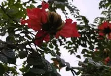 火焰树是紫葳科、火焰树属乔木,树皮平滑,灰褐色。奇数羽状复叶,对生,连叶柄长达45厘米;小叶13-17枚,叶片椭圆形至倒卵形,伞房状总状花序,顶生,密集;被褐色微柔毛,具有明显的皮孔;花冠一侧膨大,…全部>>