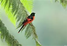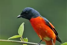 灰喉山椒鸟:共有8个亚种。体长18-22厘米。雄鸟头部和背亮黑色,腰、尾上覆羽和下体朱红色,翅黑色具一大一小的两道朱红色翼斑。中央尾羽黑色,外侧尾羽基部黑色,端部红色。…全部>>