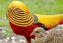 雉鸡:鸟纲、雉科、雉属的一种走禽,共有30个亚种。体形较家鸡略小,但尾巴却长得多。雄鸟和雌鸟羽色不同,雄鸟羽色华丽,多具金属反光,头顶两侧各具有一束能耸立起而羽端呈方形的耳羽簇,…全部>>