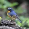 棕胸蓝姬鹟:属小型鸣禽,体长10-13厘米,体重6-10克,是一种体型很小的灰蓝及棕色鹟,雌雄羽色不同,雄鸟羽色艳丽,雌鸟羽色暗淡。雄鸟上体深蓝色,胸橙黄色,下腹灰白色。亚成鸟具褐色斑驳。…全部>>