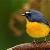棕胸蓝姬鹟:属小型鸣禽,体长10-13厘米,体重6-10克,是一种体型很小的灰蓝及棕色鹟,雌雄羽色不同,雄鸟羽色艳丽,雌鸟羽色暗淡。雄鸟上体深蓝色,胸橙黄色,下腹灰白色。亚成鸟具褐色斑驳。…全部>>