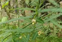 合萌,别名田皂角、水松柏、水槐子、水通草,中药名:梗通草。豆科一年生草本或亚灌木状植物,茎直立,叶对生,总状花序,腋生,花萼膜质,花冠淡黄色,子房扁平,线形。种子黑棕色,肾形,花果期7~10月。…全部>>