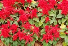 一串红,又称爆仗红、象牙红,为唇形科鼠尾草属植物。花序修长,色红鲜艳,花期又长,适应性强,为中国城市和园林中最普遍栽培的草本花卉。原产巴西、南美洲。喜温暖和阳光充足环境。不耐寒,耐半阴,忌霜雪和高温,…全部>>