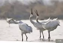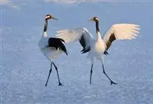 丹顶鹤:是鹤科、鹤属的一种大型涉禽,体长120-160厘米。颈、脚较长,通体大多白色,头顶鲜红色,喉和颈黑色,耳至头枕白色,脚黑色,站立时颈、尾部飞羽和脚黑色,头顶红色,…全部>>