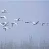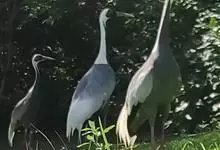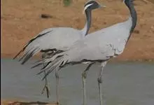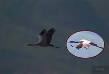蓑羽鹤大型涉禽,体长68~92厘米,是鹤类中个体最小者。通体蓝灰色,眼先、头侧、喉和前颈黑色,眼后有一白色耳簇羽极为醒目。前颈黑色羽延长,悬垂于胸部。脚黑色,飞翔时翅尖黑色。…全部>>