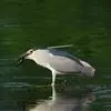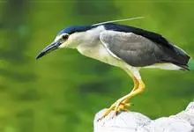 夜鹭是中型涉禽,体长46-60厘米。体较粗胖,颈较短;嘴尖细,微向下曲,黑色;胫裸出部分较少,脚和趾黄色;头顶至背黑绿色而具金属光泽;上体余部灰色;下体白色;枕部披有2-3枚长带状白色饰羽,下垂至背上,…全部>>