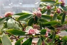 瑞香,是瑞香科瑞香属常绿直立灌木,又名夺皮香、风流树、露甲、睡香等。瑞香枝粗壮,通常二歧分枝,小枝近圆柱形,紫红色或紫褐色。叶互生,纸质,长圆形或倒卵状椭圆形,先端钝尖,基部楔形,边缘全缘。…全部>>