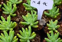 八千代是景天科,景天属多年生肉质植物。植株呈小灌木状,高可达30厘米,多分枝。叶片松散地簇生于分枝顶部,叶肉质圆柱形,表面平整稍向上内弯,顶端圆钝,…全部>>