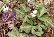 天葵 Makino)是毛茛科天葵属多年生小草本植物,块根长达2厘米,外皮棕黑色。茎高可达32厘米,基生叶为掌状三出复叶;叶片轮廓卵圆形至肾形,小叶扇状菱形或倒卵状菱形,两面均无毛;叶柄长可达12厘米,…全部>>