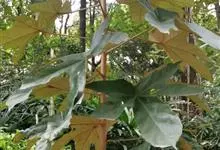 翻白叶树是梧桐科翅子树属植物,乔木,高达20米;树皮灰色或灰褐色;叶二形,掌状,基部截形而略近半圆形,上面几无毛,下面密被黄褐色星状短柔毛;叶柄被毛;花单生腋生的聚伞花序;小苞片鳞片状,…全部>>