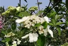 蝴蝶戏珠花 Miq.)是荚蒾科荚蒾属植物。落叶灌木,高达3米;当年小枝浅黄褐色。叶较狭,宽卵形或矩圆状卵形,有时椭圆状倒卵形。花序直径4-10厘米,外围有4-6朵白色、木型的不孕花。果实先红色后变黑色,…全部>>