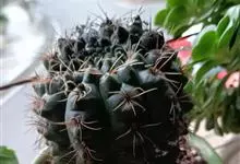 子孙球是仙人掌科子孙球属植物。植株小,球形至圆筒状,基部易生出仔球而丛生,大大小小,叠垒成群。球体鲜绿色或墨绿色,棱16-20,疣粒顶端为刺座,生有灰白色的弯刺,刺25-30,白色或淡黄色,…全部>>