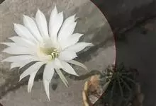 仙人球花 仙人掌科,仙人球属。植株单生或成丛。幼株球形,老株长成圆筒状,高可达75厘米,直径12-15厘米。球体暗绿色,具棱11-12。刺锥状,黑色,长1-1.5厘米。花着生于球体侧方,大型嗽喇叭状…全部>>