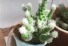 玉翁是仙人掌科、乳突球属多年生草本多浆植物。植株幼时呈扁球形或球形,以后长成圆筒状,直径10厘米左右,淡绿色。疣状突起呈圆锥形,新刺座的白色绵毛很短,疣突腋部则有20根白色长绵毛,绵毛长4厘米左右,…全部>>