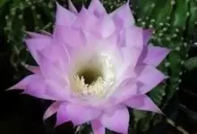仙人球花 仙人掌科,仙人球属。植株单生或成丛。幼株球形,老株长成圆筒状,高可达75厘米,直径12-15厘米。球体暗绿色,具棱11-12。刺锥状,黑色,长1-1.5厘米。花着生于球体侧方,大型嗽喇叭状…全部>>