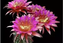仙人球花 仙人掌科,仙人球属。植株单生或成丛。幼株球形,老株长成圆筒状,高可达75厘米,直径12-15厘米。球体暗绿色,具棱11-12。刺锥状,黑色,长1-1.5厘米。花着生于球体侧方,大型嗽喇叭状…全部>>