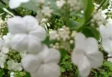琼花是荚蒾科荚蒾属落叶或半常绿灌木植物,又名扬州琼花、蝴蝶木、八仙花、聚八仙、蝴蝶戏珠花、毛琼花。琼花高达4米;树皮灰褐色或灰白色。叶纸质,卵形至椭圆形或卵状矩圆形。聚伞花序,花冠白色,辐状。…全部>>
