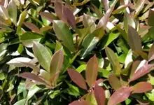 红叶石楠 是蔷薇科,石楠属杂交种,为常绿小乔木或灌木,乔木高可达5米、灌木高可达2米。叶片革质,长圆形至倒卵状、披针形,叶端渐尖,叶基楔形,叶缘有带腺的锯齿,花多而密,复伞房花序,花白色,梨果黄红色,…全部>>
