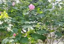 木芙蓉,锦葵科木槿属落叶灌木或小乔木。小枝上有细绒毛;叶片为卵状心形,托叶为披针形,常早落;花单生,花萼为钟形,花冠初为白色或淡红色,后逐渐变为深红色;果实为扁球形,有淡黄色的毛附着。花期8到10月。…全部>>