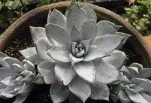 芙蓉雪莲是景天科拟石莲花属的植物。由于叶片表面覆盖着一层厚霜粉,通常呈现出白色;日照增多,温差增大后叶缘、叶尖会呈现出粉红色或橙红色。…全部>>