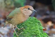 栗头八色鸫又叫锅巴雀,体长为24-26厘米,体重100-135克,是雀形目八色鸫科的鸟类。体型圆胖,尾短,腿长,常在森林底层或低植被中找食无脊椎动物。叫声简单哀婉。…全部>>