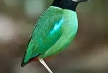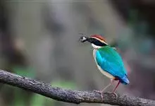 绿胸八色鸫:是雀形目八色鸫科的鸟类,共有12个亚种。体长为16-18厘米,体重65-69克。体型圆胖,尾短,腿长。头黑,上体绿色,两翼深色而具白色斑纹,头顶至后枕深褐,胸及腹部苹果绿,臀亮红。…全部>>