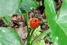 海芋 K. Koch),是天南星科海芋属的大型常绿草本植物;具匍匐根茎,有直立地上茎,基部生不定芽条;叶多数,亚革质,草绿色,箭状卵形,叶柄绿或污紫色,螺旋状排列,粗厚;花序梗圆柱形,绿色,有时污紫色,…全部>>