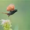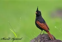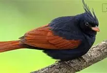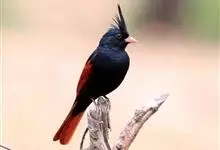凤头鹀:属小型鸣禽,体重21-31克,体长134-175毫米。以头顶的细长羽冠为特征,雄鸟全身几乎均为黑色具蓝色光泽,两翅和尾以及尾上覆羽栗红色。雌鸟具短的褐色羽冠,上体暗橄榄褐色,…全部>>
