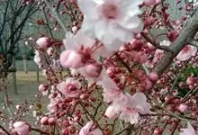 梅:蔷薇科、李属木本植物。小乔木,稀灌木,高4-10米;树皮浅灰色或带绿色,平滑;小枝绿色,光滑无毛。叶片卵形或椭圆形,叶边常具小锐锯齿,灰绿色。花单生或有时2朵同生于1芽内,直径2-2.5厘米,…全部>>
