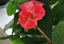 铁海棠为大戟科大戟属蔓生灌木植物;茎多分枝,具纵棱,呈旋转状;叶互生,通常集中于嫩枝上;每个花序基部边缘具微小的红色尖头;苞叶先端圆且具小尖头,无柄,上面鲜红色,下面淡红色;苞片丝状;子房光滑无毛,…全部>>