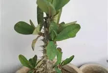 虎刺梅:别称铁海棠,是蔓生灌木植物。茎多分枝,长60-100厘米,直径5-10毫米,具纵棱,密生硬而尖的锥状刺,刺长1-1.5厘米,直径0.5-1.0 毫米,常呈3-5列排列于棱脊上,呈旋转。叶互生…全部>>