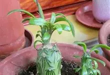 绿玉菊为菊科千里光属多年生肉质植物。植株匍匐或悬垂、向上攀援生长,茎圆柱形,红褐色,叶互生,具叶柄,肉质,很脆,易折断,叶色深绿,有浅色的脉纹,小花乳白色,有黄心。绿玉菊原产非洲南部,…全部>>