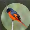 赤红山椒鸟为山椒鸟科山椒鸟属的鸟类,俗名红十字鸟、朱红山椒鸟。雄鸟红色,雌鸟黄色。分布于印度沿喜马拉雅山脉至中南半岛、印度尼西亚、菲律宾以及中国大陆的西藏、云南、福建、湖南、广西、广东、海南等地,…全部>>