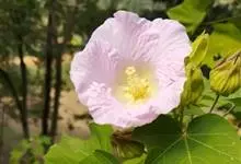 木芙蓉,锦葵科木槿属落叶灌木或小乔木。小枝上有细绒毛;叶片为卵状心形,托叶为披针形,常早落;花单生,花萼为钟形,花冠初为白色或淡红色,后逐渐变为深红色;果实为扁球形,有淡黄色的毛附着。花期8到10月。…全部>>