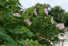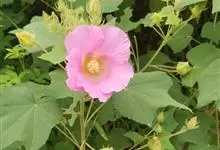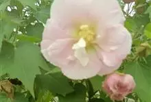 木芙蓉,锦葵科木槿属落叶灌木或小乔木。小枝上有细绒毛;叶片为卵状心形,托叶为披针形,常早落;花单生,花萼为钟形,花冠初为白色或淡红色,后逐渐变为深红色;果实为扁球形,有淡黄色的毛附着。花期8到10月。…全部>>