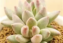 蓝黛莲是一种景天科厚叶草属植物。叶片呈略扁的圆柱形,排列成莲座状;颜色为灰绿色,表面覆盖的天然霜粉使其增添了些许灰蓝色的淡雅色调,阳光晒后叶尖变为红色。…全部>>