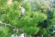 蓬莱松是天门冬科、天门冬属多年生丛生草本植物。宿存,圆柱形肉质根,纵截面为绿色和表面灰色。植株高可达3米。茎呈圆柱形或近四边形,底部木质化,具有灰色或灰褐色。幼嫩的茎在每个节上都被紫绿色鳞片包,…全部>>