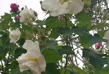 木芙蓉,锦葵科木槿属落叶灌木或小乔木。小枝上有细绒毛;叶片为卵状心形,托叶为披针形,常早落;花单生,花萼为钟形,花冠初为白色或淡红色,后逐渐变为深红色;果实为扁球形,有淡黄色的毛附着。花期8到10月。…全部>>