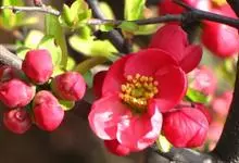 贴梗海棠 Nakai)是蔷薇科、木瓜海棠属植物。落叶灌木,高达2米,枝条直立开展,有刺。叶片卵形至椭圆形,稀长椭圆形,长3-9厘米,宽1.5-5厘米。花先叶开放,3-5朵簇生于二年生老枝上。…全部>>