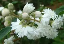 大花溲疏是绣球花科溲疏属的灌木。株高约2米;叶呈卵状菱形或椭圆状卵形,边缘具长短相间或不整齐锯齿,下面灰白色,沿叶脉星状毛具中央长辐线;花蕾长圆形;萼筒浅杯状,被灰黄色毛,裂片线状披针形,花瓣白色,…全部>>