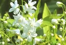 溲疏是虎耳草科、溲疏属落叶大灌木。树皮薄片状剥落,小枝中空,红褐色。叶对生,有短柄,叶片卵形至卵状披针形。直立圆锥花序,花白色或带粉红色斑点;萼杯状,裂片三角形,早落;花瓣长圆形,…全部>>