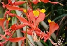 雄黄兰是鸢尾科雄黄兰属多年生草本植物。雄黄兰具扁球径,叶多基生,剑形;花茎由多花给成疏散的穗状花序,花冠漏斗状,深橙红色;蒴果。 花期7-8月,果期8-10月 。雄黄兰因橘红色的花与雄黄颜色相似而得名。…全部>>