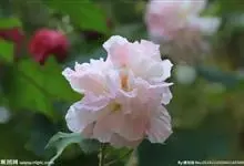 木芙蓉,锦葵科木槿属落叶灌木或小乔木。小枝上有细绒毛;叶片为卵状心形,托叶为披针形,常早落;花单生,花萼为钟形,花冠初为白色或淡红色,后逐渐变为深红色;果实为扁球形,有淡黄色的毛附着。花期8到10月。…全部>>