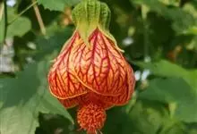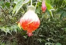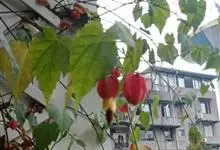 红萼苘麻是锦葵科、苘麻属常绿软木质灌木,叶绿色,长5-10厘米,心形,叶端尖,叶缘有钝锯齿,有时分裂,有细细的叶柄;叶互生,掌状叶脉;花单生于叶腋,具长梗,下垂;花萼红色,半套着大约4厘米长的花瓣,…全部>>